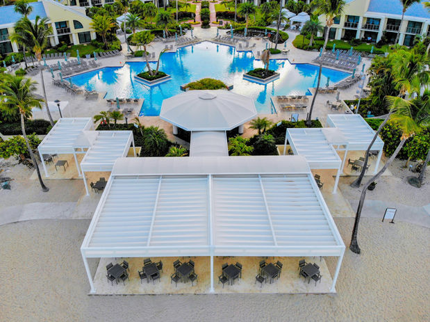 The B-Space pergola is ideally suited for hotel pools and restaurant rooftops, offering unmatched versatility, strength, and extensive coverage. Enhance your establishment's capacity and elegance, providing guests with a seamless outdoor experience in any weather. Opt for additional LED lighting for all-day use or install exterior screens to increase privacy and comfort.