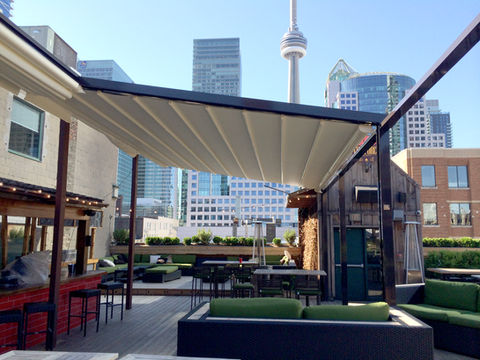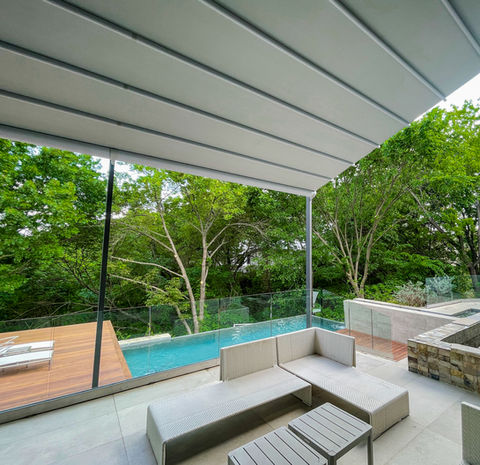 The aluminum structure and retracting canvas is available in a sloped or flat roof option for unparalleled customization. The shading system is ideal for residential applications, providing excellent protection against sun, rain and wind, while maintaining a minimalistic, sleek look that complements any home.
